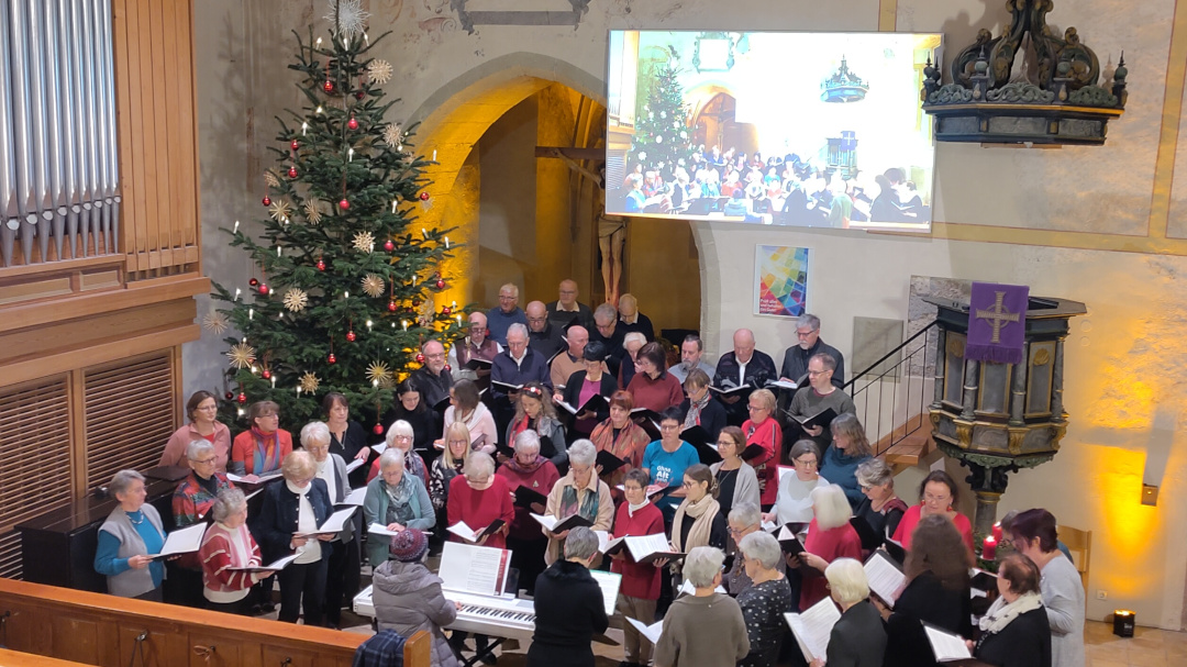 Zu Beginn, zwischen den Chorbeiträgen und zum Abschluss des Weihnachtsliedersingens waren alle eingeladen, bekannte Weihnachtslieder mitzusingen.