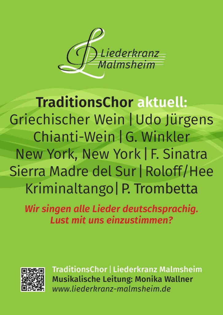 Unter dem Motto „Straßenklang im Abendglanz“ lädt der Traditionschor am Mittwoch, den 13. Mai um 18:30 Uhr in die Merklinger Straße ein – vor das Gasthaus Taube zur Serenade. Das Publikum ist herzlich eingeladen, mitzusingen!
