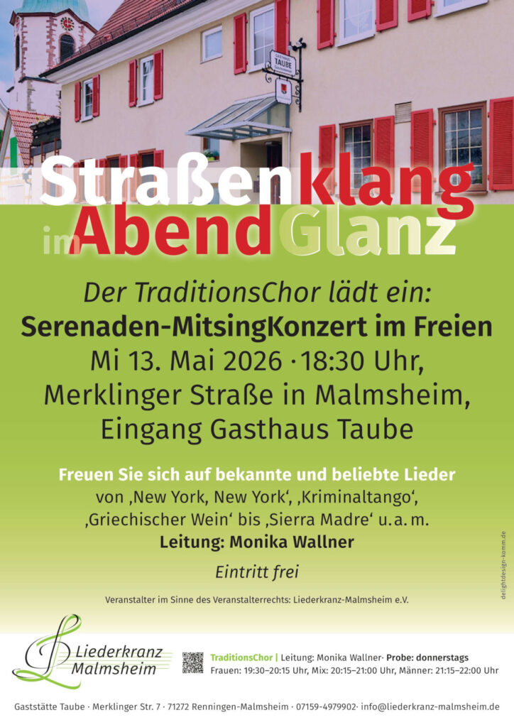 | 0 Veranstaltungen, | 0 Veranstaltungen, | 0 Veranstaltungen, | 0 Veranstaltungen, | 0 Veranstaltungen, | 0 Veranstaltungen, | 1 Veranstaltung, - ![]() Es spielen und singen: Harmonika-Speilring Malmsheim, Liederkranz Malmsheim, Musikschule Renningen, Musikverein Malmsheim |